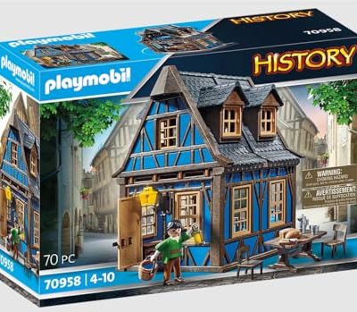 • PLAYMOBIL History 70958, viduramžių gyvenamasis namas, 70 vnt., nuo 4 metų, su žaidimo figūrėle ir įranga: kėdėmis, stalu, komoda, lova ir daug daugiau, statybinis žaislas, žaislas