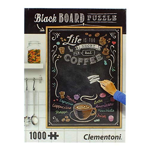 Pristatymo apimtis: 1 x kavos dėlionė 1000 vienetų Black Board, dekoratyvinis medžioklės žaidimas suaugusiems ir vaikams nuo 14 metų, Clementoni