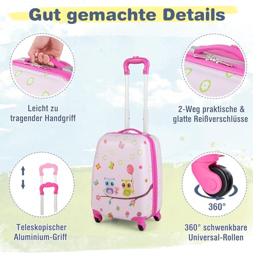 COSTWAY Vaikiškas lagaminas, Pink birds, 12″+16″, vaikiškas lagaminas