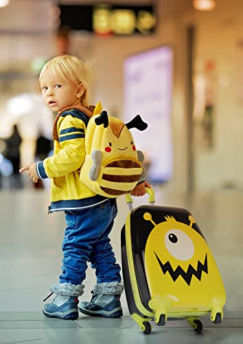 Hauptstadtkoffer – Vaikiškas bagažas, vaikiškas lagaminas, kietas lagaminas, vaikiškas bagažas ABS/PC, Monster juoda/geltona, Vaikiškas bagažas