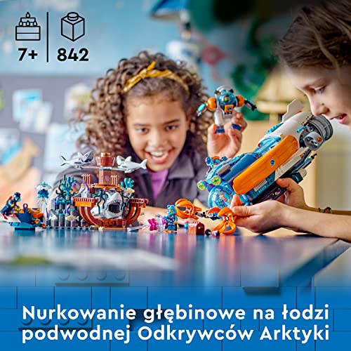 LEGO City Sea Exploration Submarine žaislų rinkinį 7 metų vaikams sudaro nuo ryklio apsaugota laivo nuolauža ir daug šaunios įrangos.