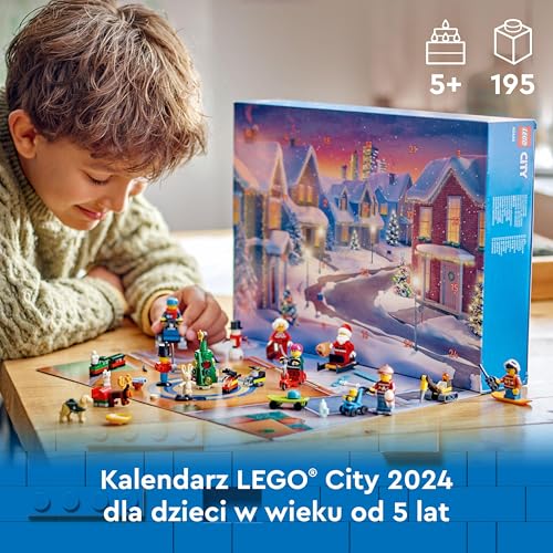 LEGO City 2024 m Advento kalendorius, Konstruojamas žaislas vaikams, 24 staigmenos, įskaitant Kalėdų Senelio ir Ponios Klauso minifigūrėlės, Dovanos idėja 5 metų vaikui, 60436