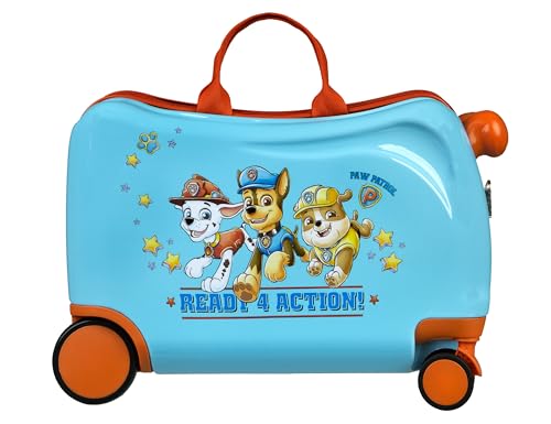 Vaikiškas lagaminas „Paw Patrol Ride on Trolley“ suteikia vaikams ir tėvams smagiau keliaujant. Vaikiško lagamino dėka vaikai visada turi vietą su savimi traukinių stotyje ar oro uoste ir gali pailsėti (iki 50 kg). Ilgos kelionės arba laukimo laikas. Slydimo funkcija leidžia vaikams naudotis lagaminu kaip su važiuojamuoju automobiliu. Naudodami dirželį tėvai gali lengvai tempti lagaminą su vaiku. Dėl dviejų 360° besisukančių ratų vežimėlis yra ypač lankstus ir smagus, kai slydimas iš visų pusių garantuojamas. Įstumiamame lagamine taip pat yra daug vietos bagažui ir žaislams. Dėl praktiško išdėstymo su užtrauktuku užsegamu skyriumi ir kryžminiais dirželiais visi būtiniausi kelionės daiktai yra gerai sutvarkyti. Daugelyje oro linijų vežimėlį galima gabenti rankiniame bagaže (išmatavimai: 47,5 cm plotis x 32 cm aukštis x 23 cm gylis). Vaikišką lagaminą taip pat galima naudoti namuose kaip gražią žaislų talpyklą.