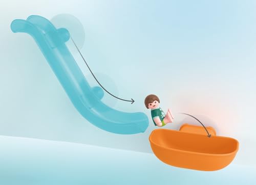 Puiki pramoga maudantis: plaukiojanti čiuožykla su siurbtukais, tvirtinama prie vonios krašto arba lygių plytelių. Figūros ir gyvūnai gali slysti žemyn ir visu greičiu panirti į vandenį. Naudodami tūpimo tinklą galite sugauti juos visus. Kas padės sugauti visus gyvūnus? Kas nueis toliausiai?