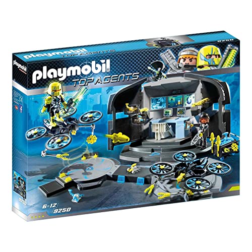 PLAYMOBIL – Geriausi agentai grįžta į paslaptingą kelionės misiją. Nedorėlis dr. Dronas sukūrė naują blogą planą savo labai pažengusiame komandų centre, o aukščiausi agentai turi padaryti viską, kad užkirstų kelią jo piktam egzekucijai. Čia galite užprogramuoti du dronus su galimybe šaudyti. Netrukus jie pradeda nuo nusileidimo platformų. Bet koks tavo tikslas? Geriausi agentai yra budrūs. Nuostabu: valdymo centrą galima sulankstyti ir iš išorės atrodo kaip piktadario Drono šalmas.