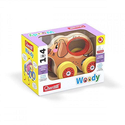 Iš medžio pagaminta transporto priemonė ir šuo, transporto priemonė su mediniu padėklų laikikliu iš Quercetti. WOODY-Serie yra didelių medinių gyvūnų serija, kurią galite pasiimti bet kur, namuose ir už jos ribų. Dėka iš minkštų EVA putų pagamintų ritinėlių, kuriuos galima nuimti ir nuplauti, sukibimas: garantuojamas maksimalus sukibimas ant visų paviršių, nepaliekant žymių naršant ar triukšmaujant. Šios transporto priemonės yra unikalaus dizaino, o dėl ergonomiškos formos rankenos vienas rašiklis puikiai telpa mažiausio rankoje.